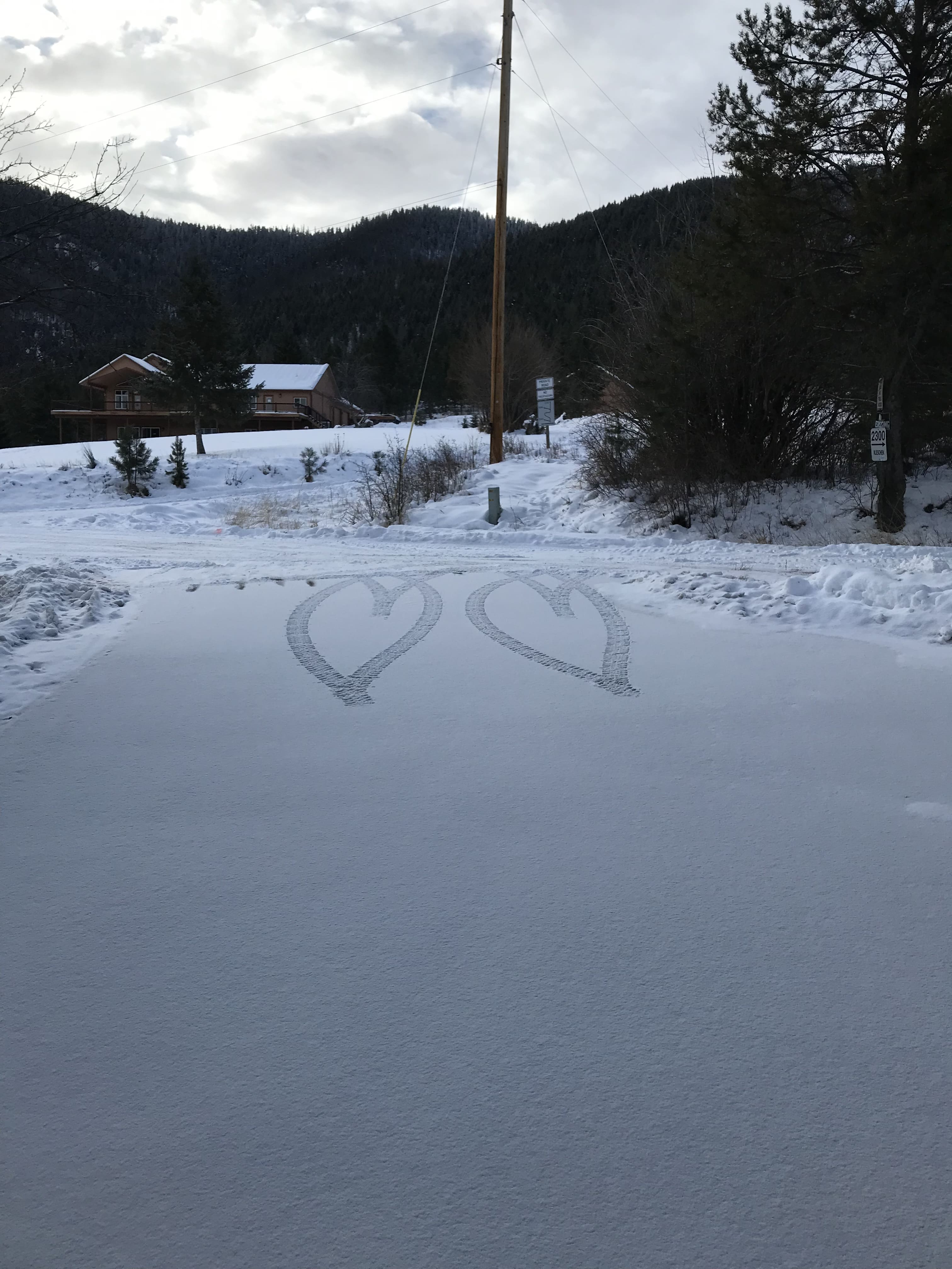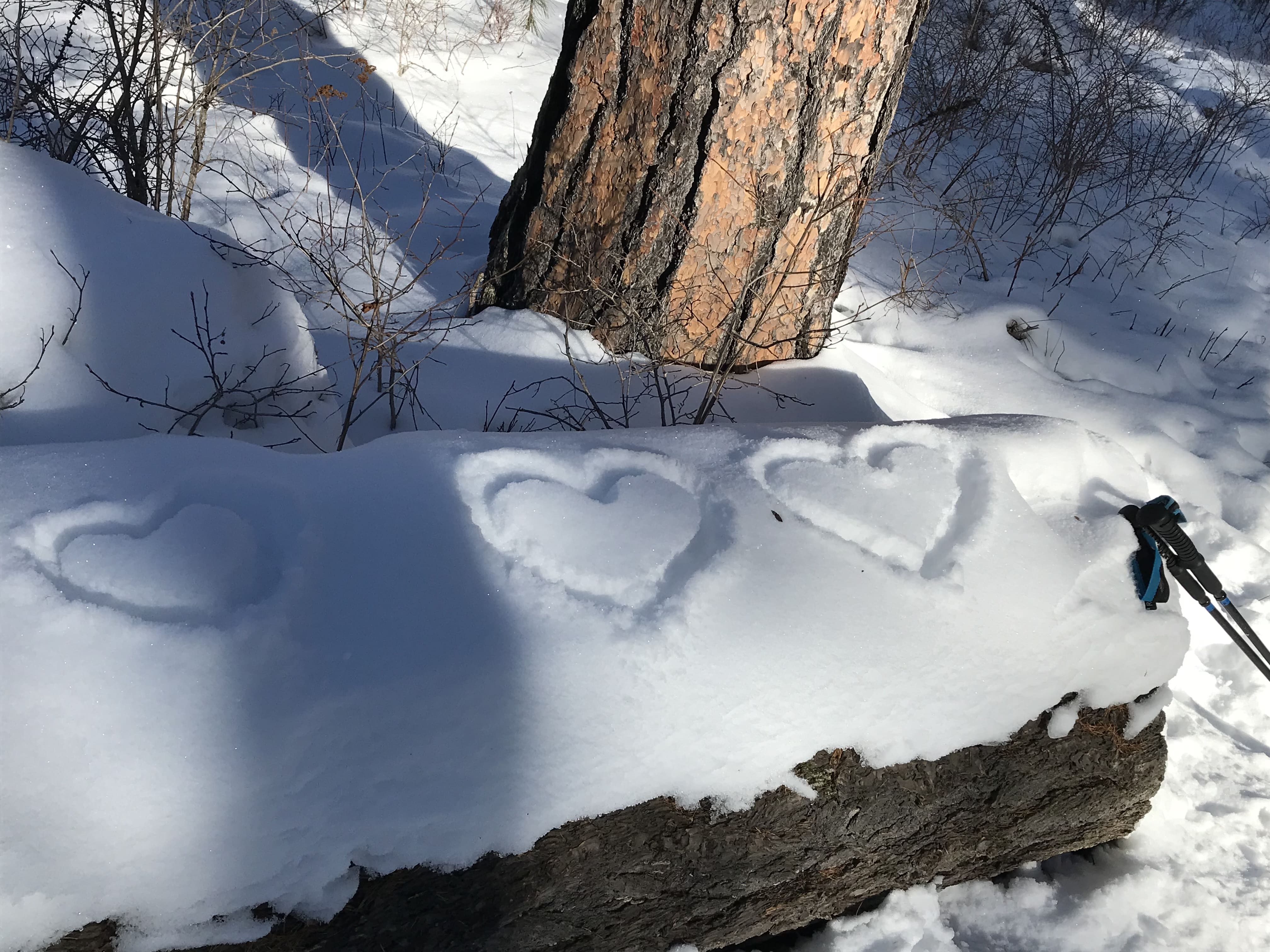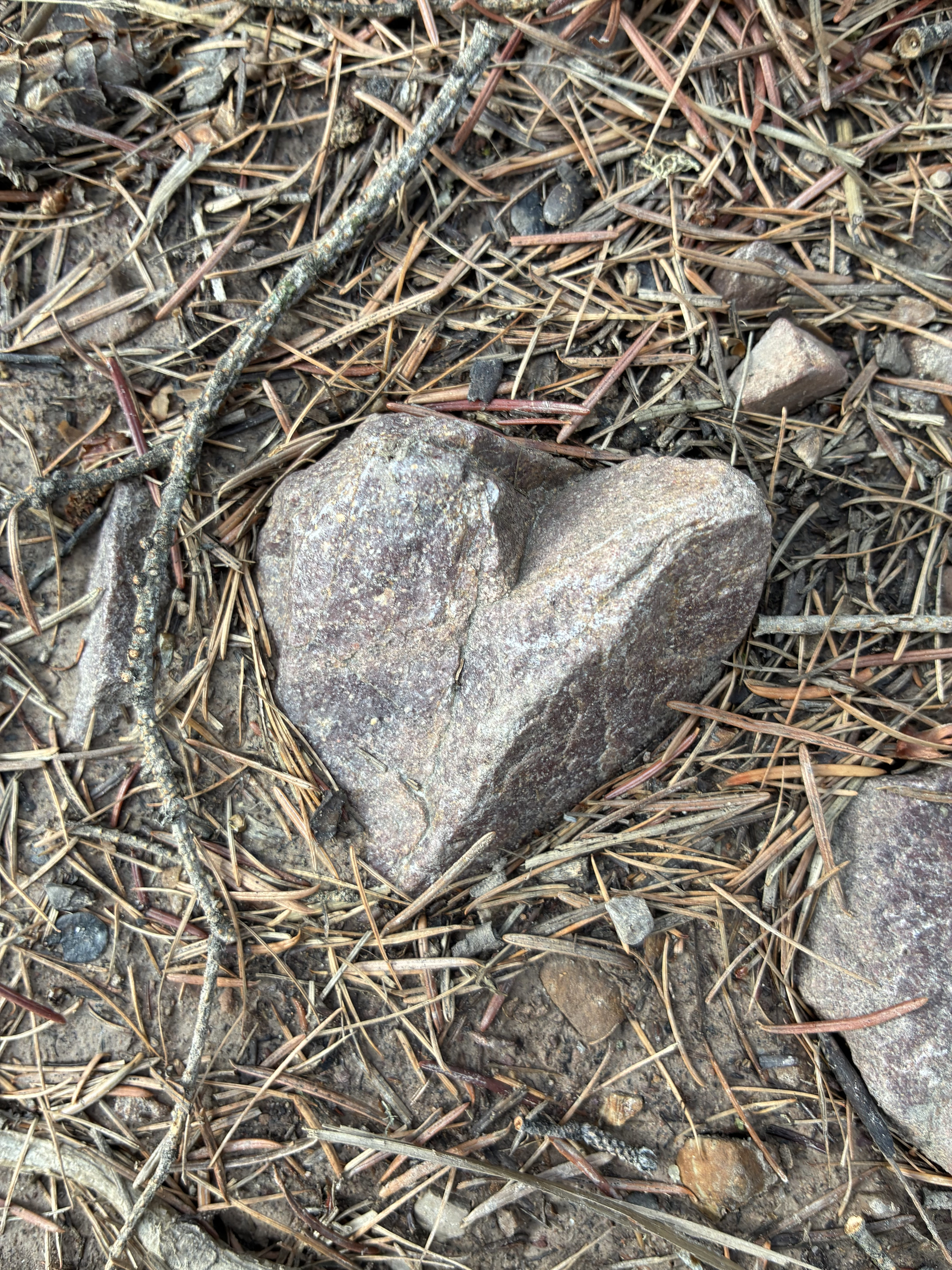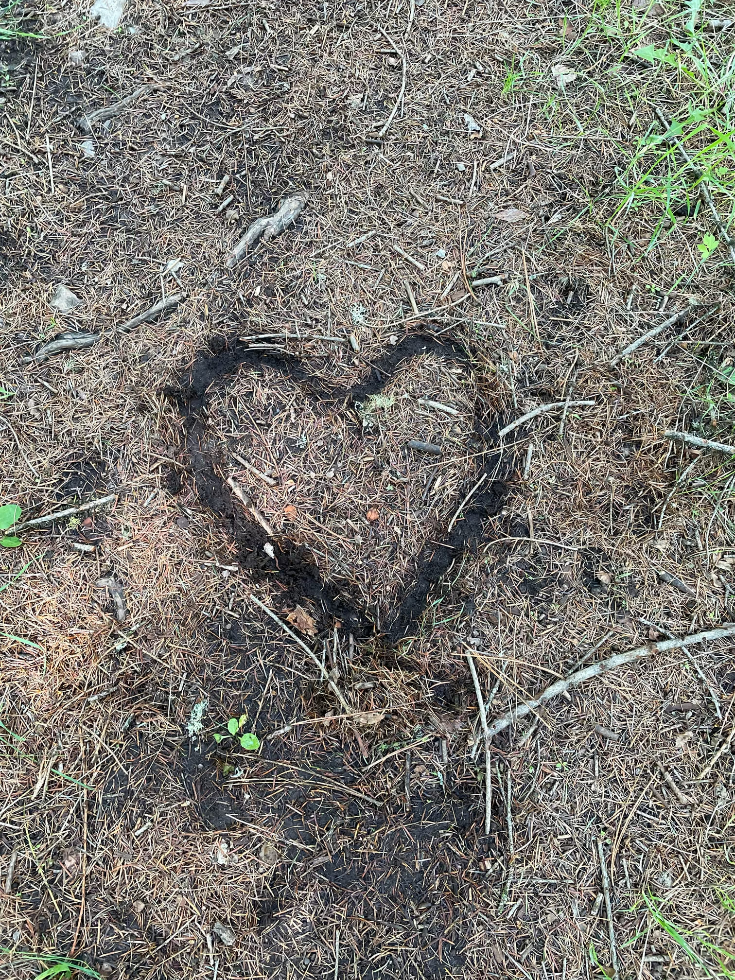 The heart is an essential piece of our logo. Geno was full of love, warmth, and a bit of mischief, and he befriended everyone that he met. He drew hearts along the trail for Pam, and found assorted heart shaped rocks for her during his time in the woods. He left notes everywhere for her, and they always contained hearts and sweet messages of love.